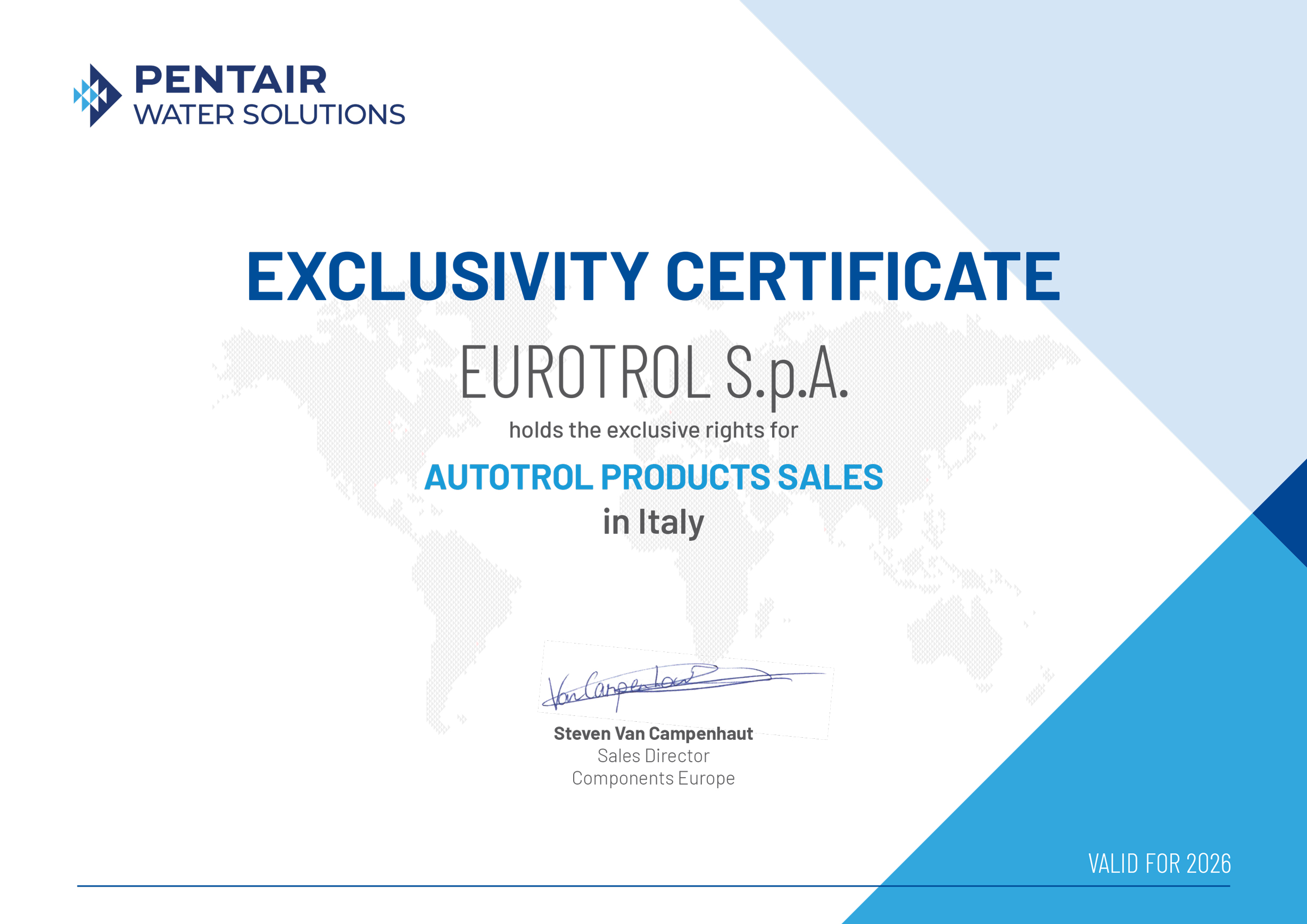 Anche per il 2026 saremo DISTRIBUTORI ESCLUSIVI della linea Autotrol di Pentair Water per il mercato italiano.